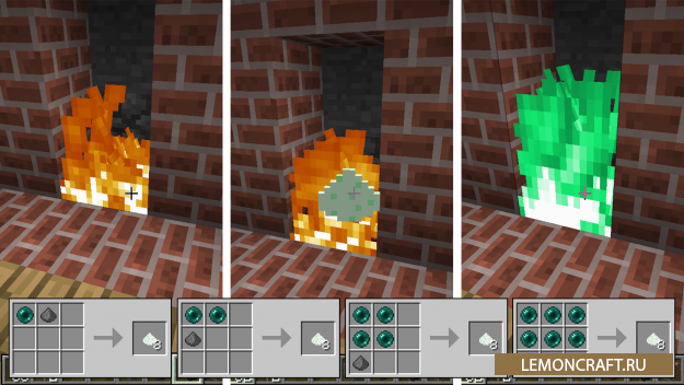 Мод Floocraft добавляет в игру специальный вид пороха - зеленый, как в рассказах про Гарри Поттера. С помощью данного пороха вы сможете построить свою сеть новых телепортов. Телепорты организуются в каминах. Подсыпав туда этот порох, вы сможете переместиться из одного камина в другой.