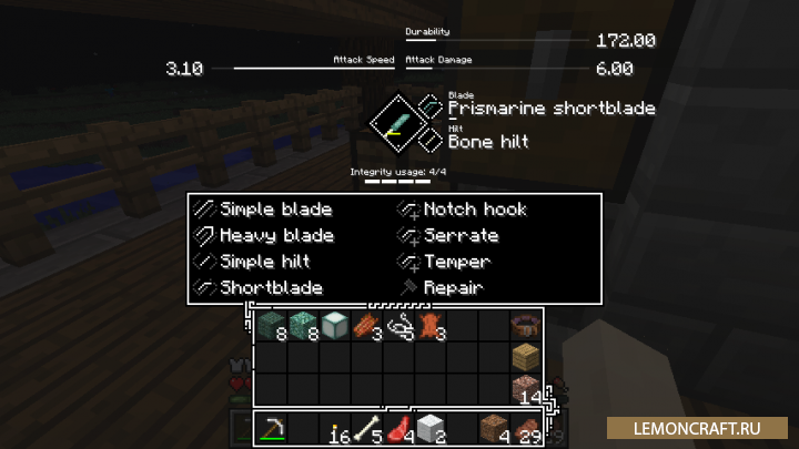 Установив мод Tetra вы сможете улучшать отдельные части мечей и молотов. Мод использует модульную структуру улучшения оружия, это значит вы сможете заменять отдельные части оружия более продвинутыми. Кроме этого мод добавит специальные пояс с инструментами. Данный пояс упрощает работу с оружием и инструментами.