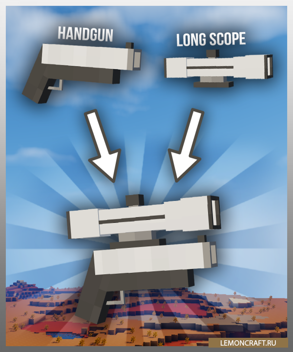Мод MrCrayfish's Gun добавляет в игру новое, универсальное, огнестрельное оружие. Установив мод вы получите 5 видов нового оружия: пистолет, штурмовая винтовка, дробовик, ружье, базука (ракетница), миниган (многоствольный пулемет), гранатомет. Для данного оружия будут добавлены боеприпасы, как простые патроны, так и гранаты для гранатомета. Как оружие, так и патроны крафтятся дешево, что позволит вам оторваться по полной. Оружие перезаряжать не надо, главное что бы было достаточно патронов в инвентаре.