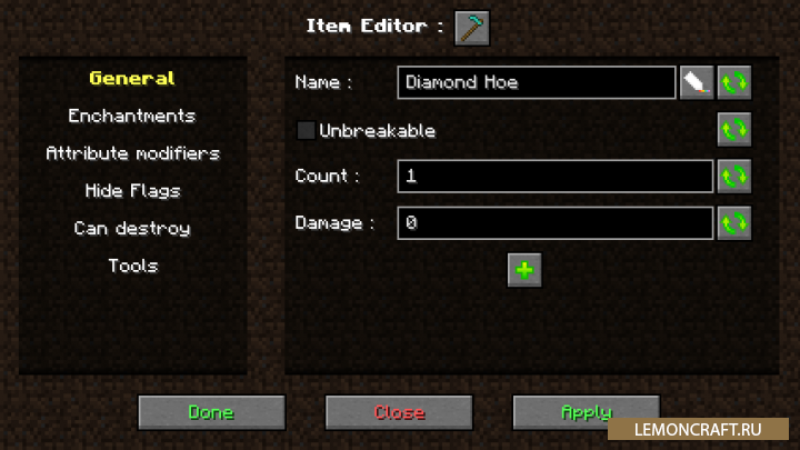 Мод на редактор для игры IBE Editor является отличным модом, который разработан специально для администраторов серверов и создателей карт. С помощью данного инструмента вы сможете с легкостью редактировать различные предметы и блоки игры, для чего в моде организован удобный интерфейс. Очень радует то, что все изменения внесенные в игру с помощью данного мода сохраняться даже после его удаления. Для работы с предметом, возьмите его в руку и нажмите горячую клавишу "I".