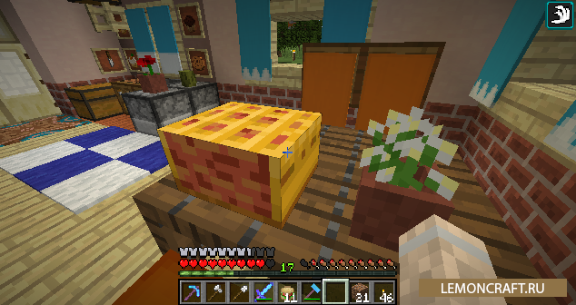 Мод на новые блоки, оружие, инструменты Xerca является довольно обширным модом, который добавит в игру новое оружие, зачарования, еду, инструменты и блоки для декораций. Например в игре появится штормовой крюк, флакон содержащий несколько порций зелья, книжный шкаф с физическим отображением содержимого.