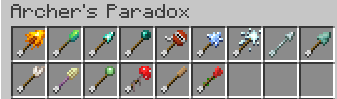 Мод на уникальные стрелы Archer's Paradox добавит в игру большое количество новых стрел, которые не просто взрываются при соприкосновении с блоком, а имеют свои уникальные особенности. Например некоторые из них при попадании в блок садят траву. цветы или грибы. Есть тренировочные стрелы, которые не наносят мобам урона. Есть стрелы, которые могут вызвать молнию и используют мощь ифрита. Такой набор стрел пригодится каждому игроку и сделает игру более интересной.