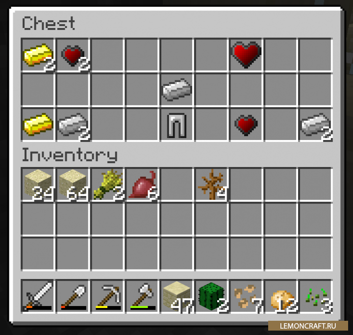 Мод на зависимость здоровья от опыта LevelHearts добавляет в игру зависимость здоровья от накопленного вами опыта. Так же в мире будут спавниться сердца, подобрав которые вы сможете восстановить свое здоровье. В настройках мода можно настроить такие параметры, как стартовое количество здоровья, сохранение здоровья после смерти, множитель при повышении уровня.