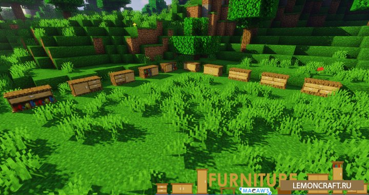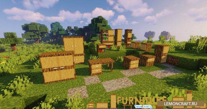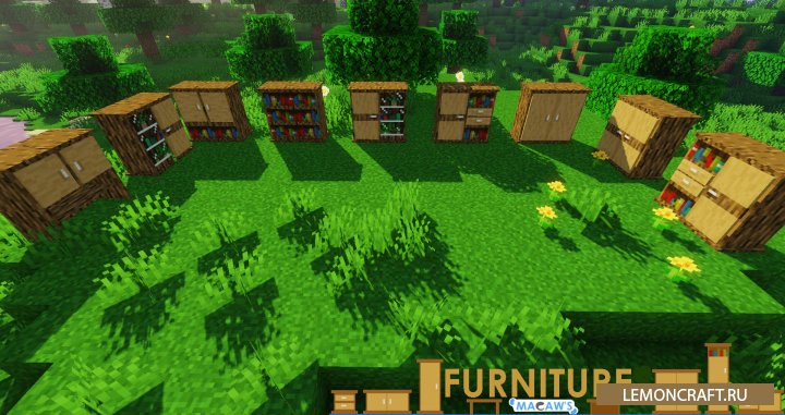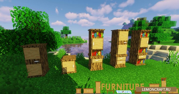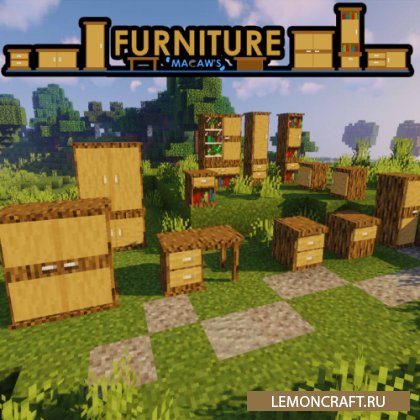 Мод на мебель в ванильном стиле Macaw's Furniture добавит в игру новые блоки, которые позволят вам обустроить интерьер вашего строения. В основном мод добавляет шкафы (двухстворчатые, низкие, высокие, с ящиками, с книжной полкой). Всего будет добавлено около 30 видов новой мебели. Главным плюсом данного мода, является то, что автор постарался максимально приблизить всю фурнитуру к ванильному майнкрафту. В результате новые блоки отлично вписываются в стандартные текстуры и хорошо сочетаются со стандартными блоками.