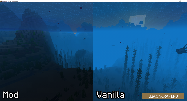 Мод на улучшенные подводные механики Better Drowning является еще одним набором твиков позволяющих улучшить подводную механику. Например, чем глубже вы будете погружаться, тем больше получите урона, если у вас будет нехватка воздуха. Так же, теперь, вы сможете набирать воду мгновенно. Видимость в воде станет намного лучше и будет исправлена ошибка с избытком воздуха.