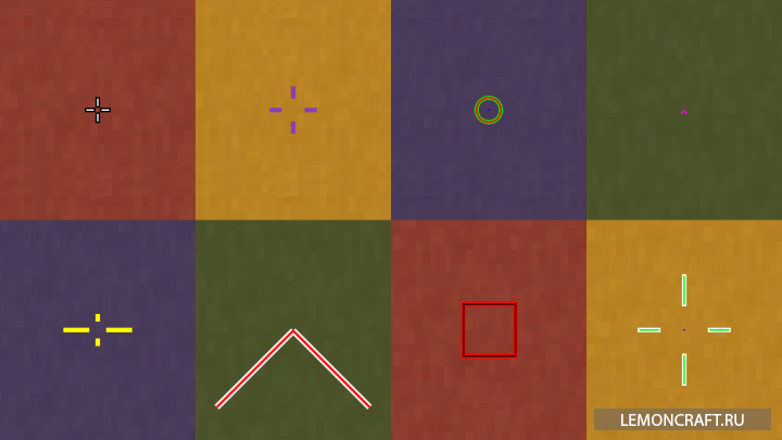 Мод на настраиваемый прицел Custom Crosshair добавляет в игр возможность изменить внешний вид прицела, настроив его полностью под свои нужды. Вы сможете настроить форму прицела, его размер и цвет. Для вызова меню настроек нажмите: Ё она же ~ ( либо C в новых версиях)