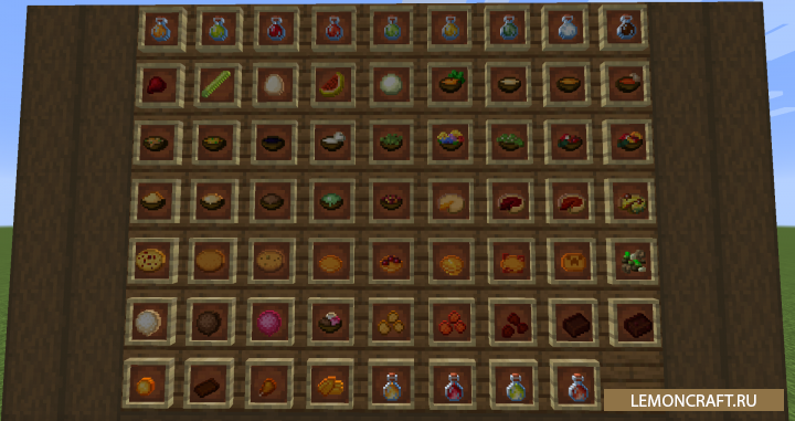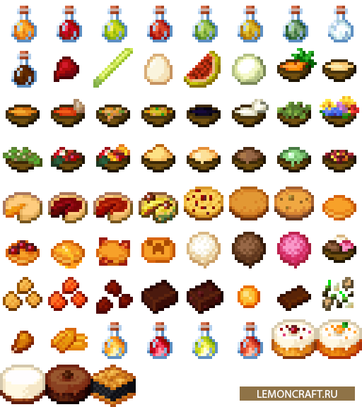 Мод на новую еду Vanilla Cookbook добавит в игру большое количество новых видов пищи (около 60 видов), плюс в игре появится 5 новых тортов. Все виды пищи имеют ванильную стилистику игры, что отлично вписывается в любой мир Майнкрафт.