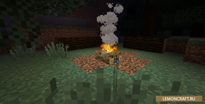 Мод на новую механику костра Campfire Overhaul полностью изменит процесс разжигания костра, который появляется в вашем мире не зажжённым. Зажечь его вы можете с помощью огненной стрелы, огнива и других предметов. Так же появятся новые рецепты крафта, вы сможете сушить губки и обжигать кирпичи. Кроме всего этого вам придется постоянно поддерживать горение костра, подкидывая в него горючие предметы.