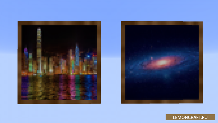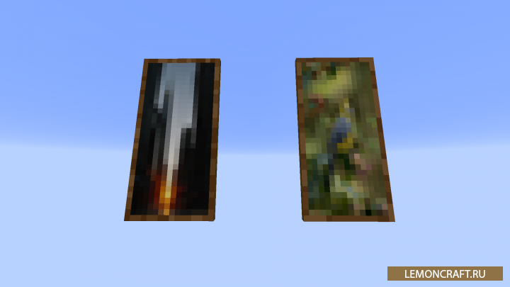 Мод на картины More Paintings посвящен тем, кто хотел бы организовать в своем мире картинную галерею. Установив данный мод вы сможете стать настоящим художником. Мод добавляет около 20 картин, которые вы сможете развесить в своих постройках. Автор мода не собирается останавливаться на достигнутом, поэтому ждите обновлений мода.