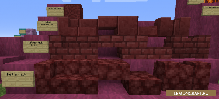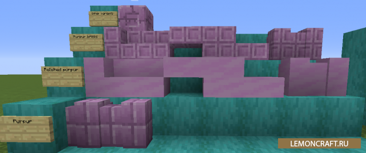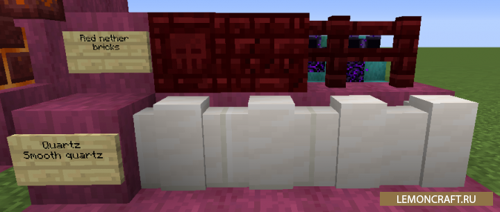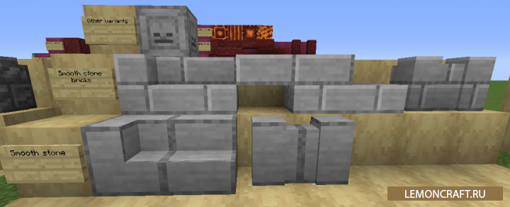 Мод на полублоки из ванильных материалов ExtraDetails добавляет в игру возможность постройки лестниц, стен и различных декоративных блоков с помощью полублоков созданных на основе ванильных материалов. Уже на момент создания мода в нем присутствовало более 150 новых полублоков и 60 структур.