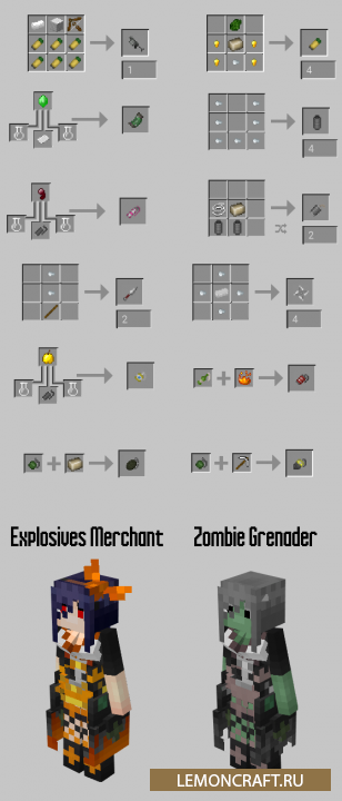 Мод на взрывчатые вещества Explosives создан с помощью Mcreator и добавляет в игру различные взрывоопасные предметы и другие приспособления, которые делают выживание и сражения в игре еще более интересными.