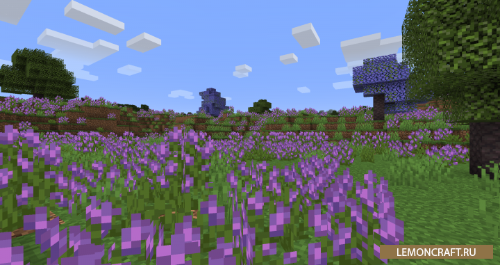 Мод на изобилие Abundance добавляет в игру новый биом под названием лавандовые поля, в котором вы сможете обнаружить множество новых растений и блоков. При этом новые растения будут появляться в уже существующих биомах.