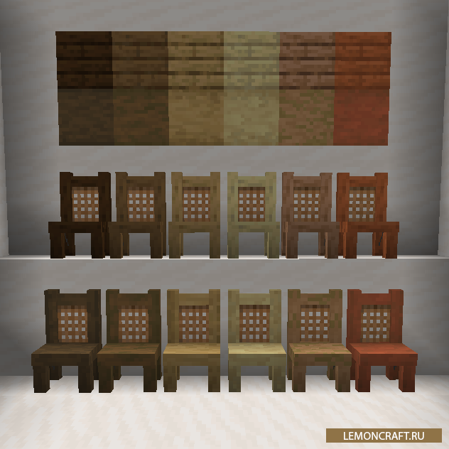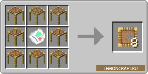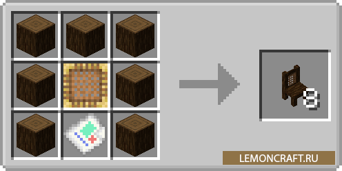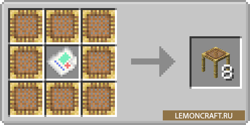Мод на мебель TableChair позволит вам создавать столы и стулья из ванильных материалов. Сам стол вы сможете украсить, установить на него вазу с цветами или разместить на нем свою еду.