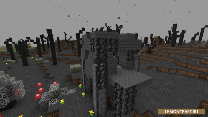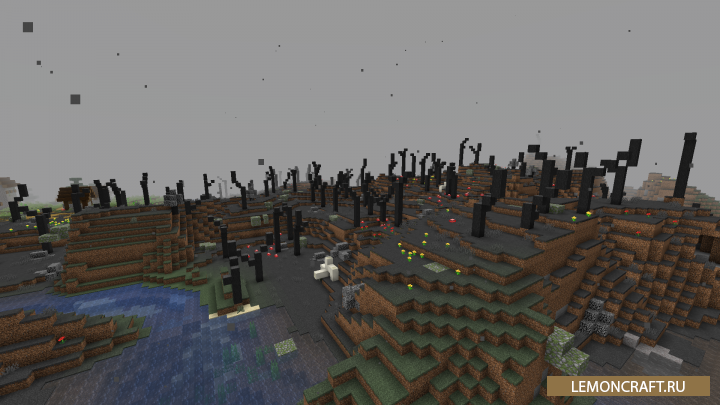 Мод на биом Выжженный лес Burnt Forest создан с помощью mcreator и добавляет в игру мрачный биом под названием Выжженный лес. Исследуя этот серый мир вы найдете сгоревшие постройки и деревья, можете обнаружить новую руду и встретить гоблина из которого выпадает золото и даже его рюкзак.
