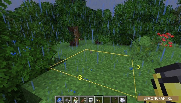 Мод на рулетку Measurements добавит в игру новый инструмент, с помощью которого вы сможете измерить расстояние от одной точки в вашем мире до другой. Для измерения расстояния нужно взять инструмент в руки и нажать ПКМ на 1-й точке, далее переходите ко 2-й точке и делаете то же самое. Измеряемое расстояние будет выделено, а рядом появится информация о расстоянии между двумя точками.