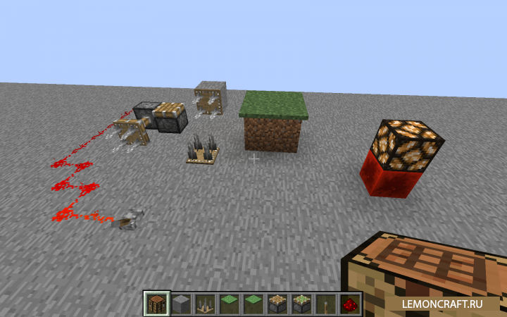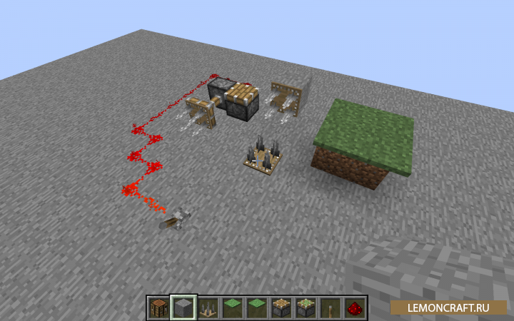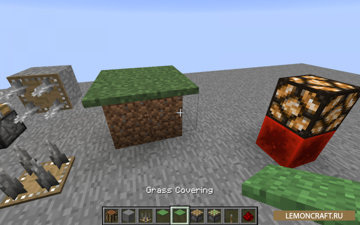 Мод на шипы и траву Spikes and Grass Covering добавляет в игру два новых блока с помощью которых вы сможете создать ловушки для ваших врагов. Первый блок это шипы, коснувшись которых ваш враг получает урон. Второй блок, это трава при касании с которой она исчезает. Отличный вариант что бы устроить ловушку для ваших недругов.