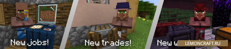 Мод на больше жителей More Villagers увеличит количество деревенских жителей, в результате чего вы сможете совершать больше торговых сделок. На момент создания мода доступны следующие профессии: океанограф, инженер, плотник, житель нижнего мира, житель края.