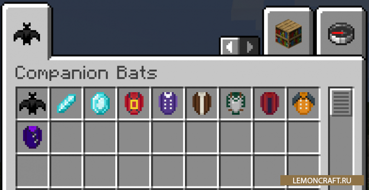Мод на летучих мышей-компаньонов Companion Bats добавляет в игру возможность приручить летучую мышь используя для этого тыквенный пирог. После приручения, нового компаньона можно разместить в инвентаре, прокачивать ему навыки и даже назначить особый класс, который зависит от его экипировки.