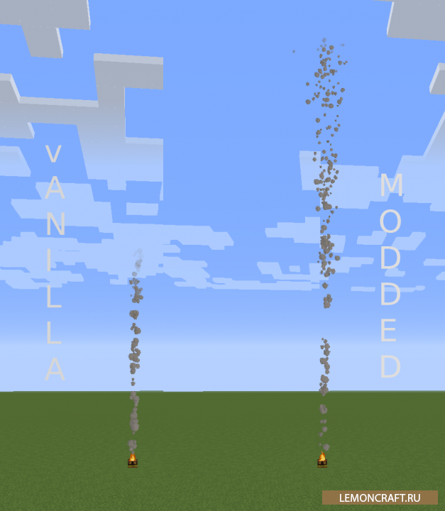 Мод на рассеивание дыма Smoke Extender небольшая модификация после установки которой вы увидите, что дым от костра поднимается намного выше.