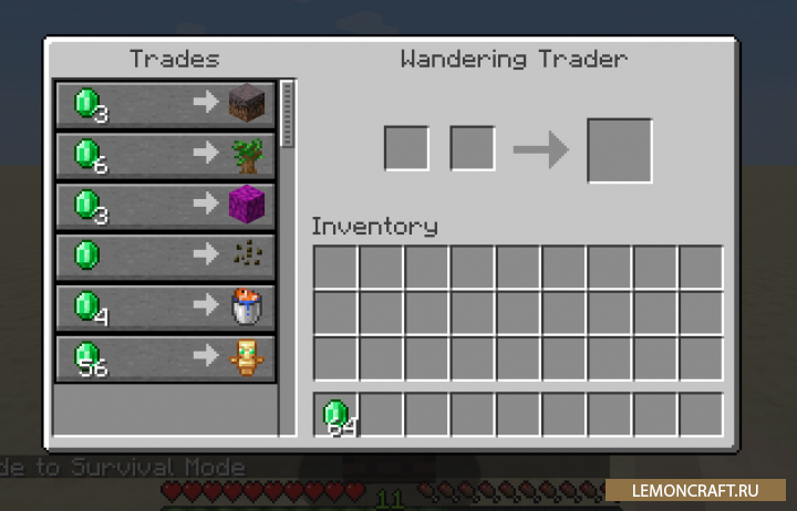 Мод на лучшего странствующего торговца Better Wandering Traders добавит в игру возможность получать от странствующего торговца не всякий "мусор", а действительно полезные предметы. Ранее торговец бродил по миру и собирал все, что попадалось ему на пути и пытался вам втюхать. После установки мода у него будет определенный список предметов, содержащий пять редких предметов и один супер редкий.