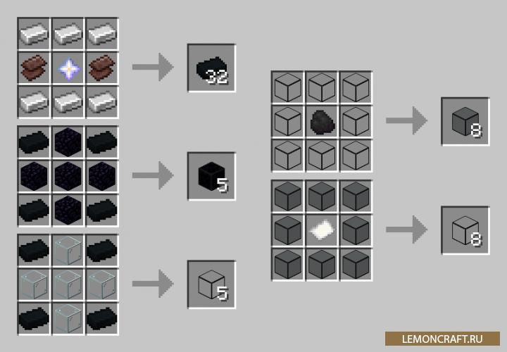 Мод на защиту от иссушения Witherproofed добавит в игру возможность создать особый сплав, который позволит вам усилить блоки стекла и обсидиан. Что бы создать 32 слитка нового сплава, вам понадобится 6 слитков железа, 2 незеритовых лома и звезда нижнего мира.