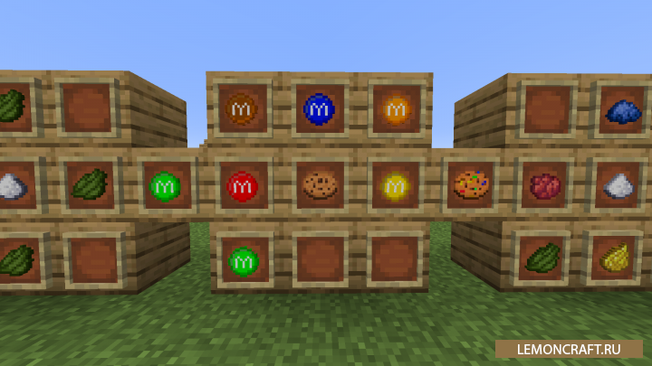 Мод на конфетки Minecraft M&M's был переделан из версии 1.7.10 до версии 1.16.5 про конфетки, которые будут не только утолять голод, но и давать ускорение на 15 секунд. Если скушать печенку M&M's вы получите +6 к голоду и +1 к скорости. Радужная конфетка утоляет 3 единицы голода и дает 1 минуту прыгучести и скорости.