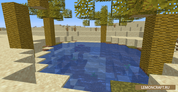 Мод на выживание в пустыне Survivable Deserts позволит вам комфортно чувствовать себя в пустынных биомах, даже если там нет деревень. После установки мода в пустынях начнут генерироваться оазисы, будут добавлены нужные для выживания блоки и предметы и новые виды еды.