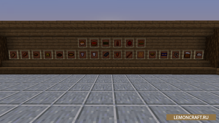 Мод на еду Марка Mark's food добавляет в игру двадцать три новых предмета еды, которые вы сможете скрафтить и съесть. Среди новой еды вы сможете полакомиться кексиками, соусом, куриной запеканкой.