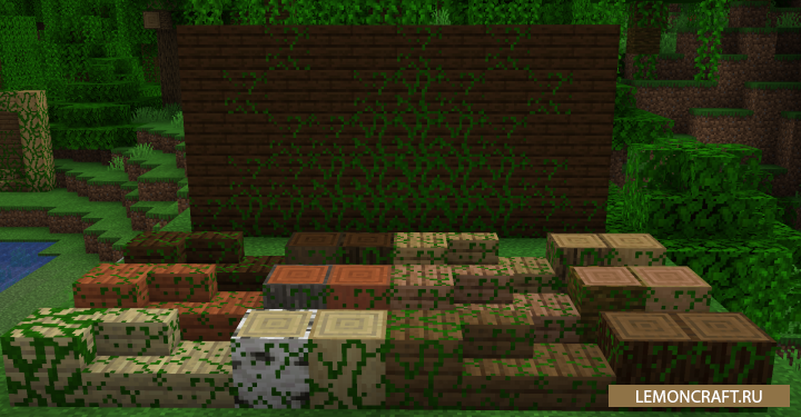 Мод на заросшие блоки Overgrown Blocks добавляет в игру новую механику при которой каменные и деревянные блоки будут со временем зарастать травой. Следя за ростом этой травы вы реально оцените, как течет время в игре.