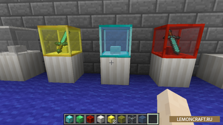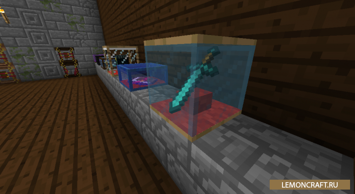 Мод на стеклянные витрины Better Displays добавляет в игру красивые, декоративные витрины и прикольные держатели для книг. Теперь вы сможете демонстрировать свои ценные предметы не опасаясь за их безопасность, а ваши строения украсятся новыми декоративными элементами.