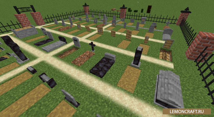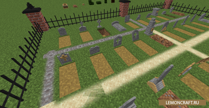 Мод на опасные кладбища Arky's Halloween добавляет в игру генерацию ужасных кладбищ, которые вы сможете исследовать избегая различных ловушек и сражаясь с опасными монстрами. В состав мода входит новый биом, 50 надгробий, сундуки похожие на гробы, высокие, труднопроходимые заборы и еще много чего.