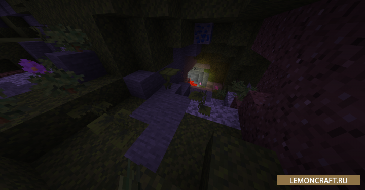 Мод на "Пышные пещеры" Lush Caves в задачу которого входит перенести новый биом под название "Пышные пещеры" из последних версий майнкрафта в версию 1.12.2. Мод добавит в игру блоки мха, цветов азалии, спорцвета и твердолиста, а так же блоки листьев.