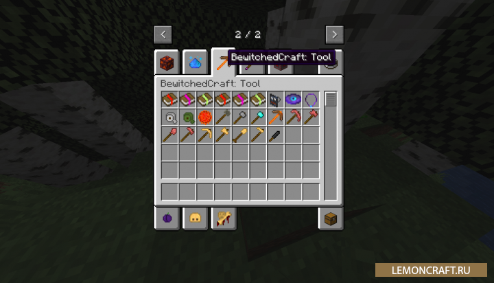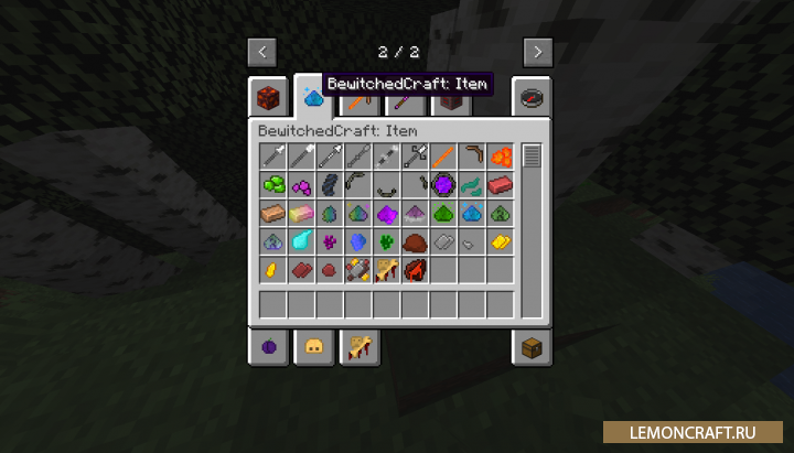 Мод на магию BewitchedCraft довольно интересный магический мод, созданный в MCreator и добавляющий в игру магические посохи, систему магических навыков, нож для проведения ритуалов, сердца гастов, жертвоприношение, руды и новые биомы.
