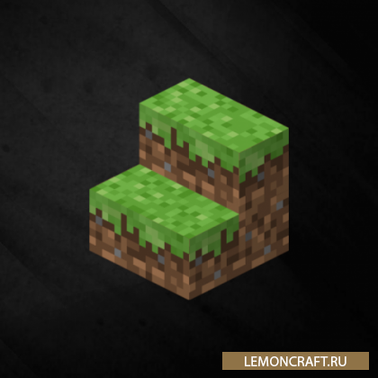 Мод на новые ступеньки Alexis 64 Stairs добавляет в игру следующие виды новых блоков для строительства: земляные, песочные, каменные, стеклянные и травяные ступени.