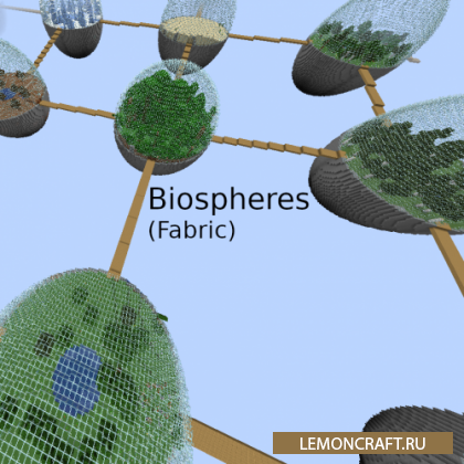 Мод на биосферы Biospheres введет в игру новый тип генерации миров, который представляет собой стеклянные сферы, соединенные между собой, с несколькими вариантами биомов внутри.