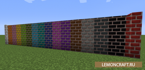 Мод на цветные кирпичи Colored Bricks добавит в игру просто огромное количество вариантов кирпичных блоков, лестниц, полублоков и резных блоков различных цветов.