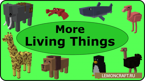Мод на животных More Living Things добавляет в игру большое количество животных имеющих простые текстуры и пару агрессивно настроенных мобов.