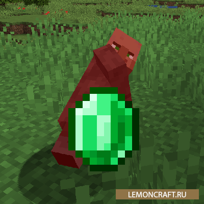 Мод на изумруды из жителей Villagers Drop Emeralds on Death небольшая модификация, после установки которой каждый деревенский житель после своей смерти будет дропать изумруд.