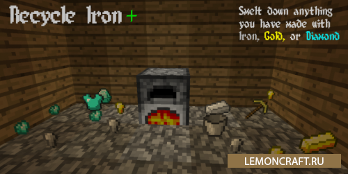 Мод на плавку предметов Recycle Iron добавляет в игру новые инструменты с помощью которых вы сможете осуществлять плавку различных предметов, получая при этом золото и железо.