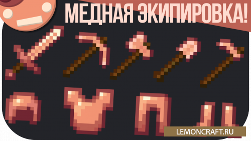 Мод на медную экипировку Copper Equipment добавляет в игру броню и инструменты, которые можно создать из меди.
