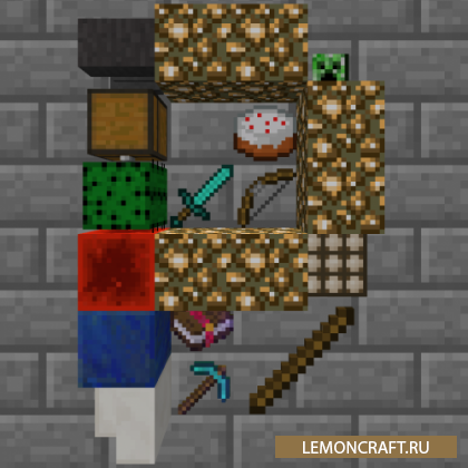 Мод на размещение предметов Plonk добавит в игру возможность размещать предметы на любой из сторон блока, для чего используйте клавишу Р.