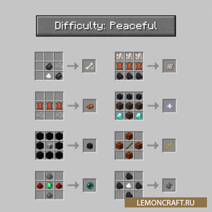 Мод на полезный крафт Peaceful Recipes добавляет в игру большое количество рецептов для тех предметов, которые вы ранее не могли создать в игре Майнкрафт.