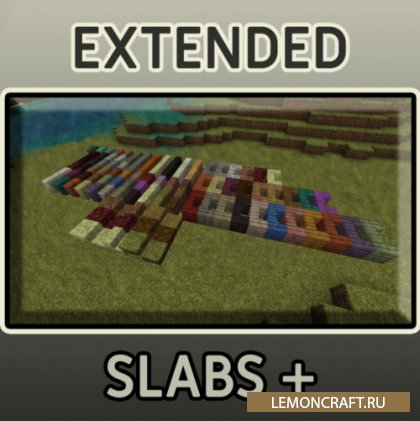 Мод на вертикальные полублоки Extended Slabs + добавит в игру различные варианты вертикальных полублоков, угловые блоки, лестницы, а так же полублоки для различных ванильных материалов.